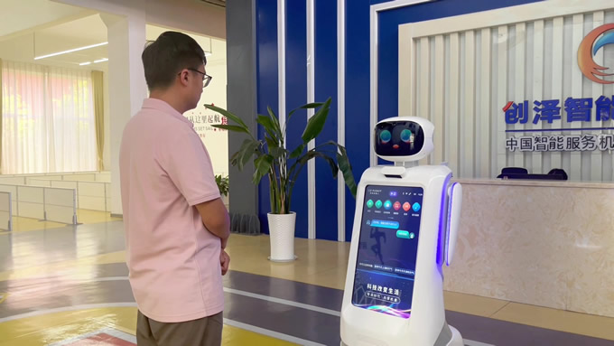 創(chuàng)澤智能消毒機器人和智能大屏機器人等多款機器人亮相蘭洽會,彰顯了創(chuàng)澤AI技術實力與場景深耕能力
