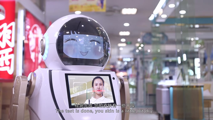 會(huì)說(shuō)英文的迎賓機(jī)器人