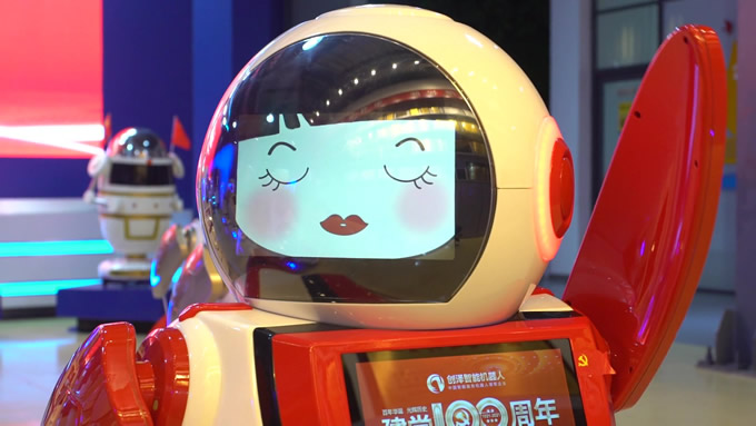 會(huì)說(shuō)英文的迎賓機(jī)器人
