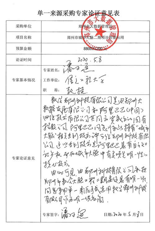 經(jīng)專家論證,認為本次采購屬于只能從供應商處采購 情形,我單位擬采用單一來源采購方式選用數(shù)字鄭州科技有限公司作為供應商。