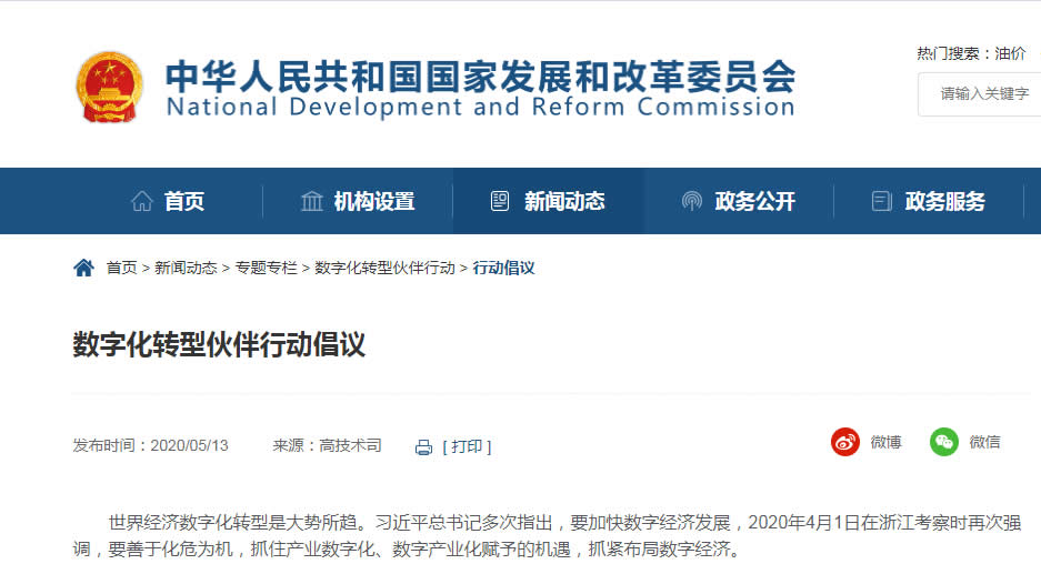 世界經(jīng)濟(jì)數(shù)字化轉(zhuǎn)型是大勢(shì)所趨?倳浂啻沃赋,要加快數(shù)字經(jīng)濟(jì)發(fā)展,2020年4月1日在浙江考察時(shí)再次強(qiáng)調(diào),要善于化危為機(jī),抓住產(chǎn)業(yè)數(shù)字化、數(shù)字產(chǎn)業(yè)化賦予的機(jī)遇,抓緊布局?jǐn)?shù)字經(jīng)濟(jì)。