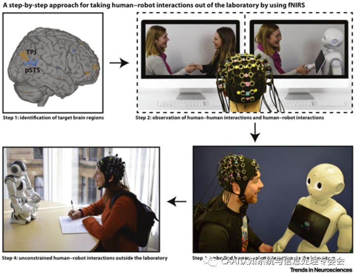 在現(xiàn)實(shí)世界中,可以采用逐步的方法來(lái)實(shí)現(xiàn)實(shí)驗(yàn)室之外的不受約束的人機(jī)交互。D一步是識(shí)別與社會(huì)認(rèn)知過(guò)程相關(guān)的大腦區(qū)域,如之前的發(fā)現(xiàn);隨后,基于屏幕的研究探索了這些區(qū)域在觀察人人和人機(jī)交互過(guò)程中的參與情況;第三步是在實(shí)驗(yàn)室環(huán)境中與機(jī)器人進(jìn)行相對(duì)不受約束的交互;后一步是允許在日常環(huán)境(如學(xué)校和家庭)中與機(jī)器人進(jìn)行具體交互。每一步的結(jié)果都可以為下一步使用的方法和分析提供信息。
