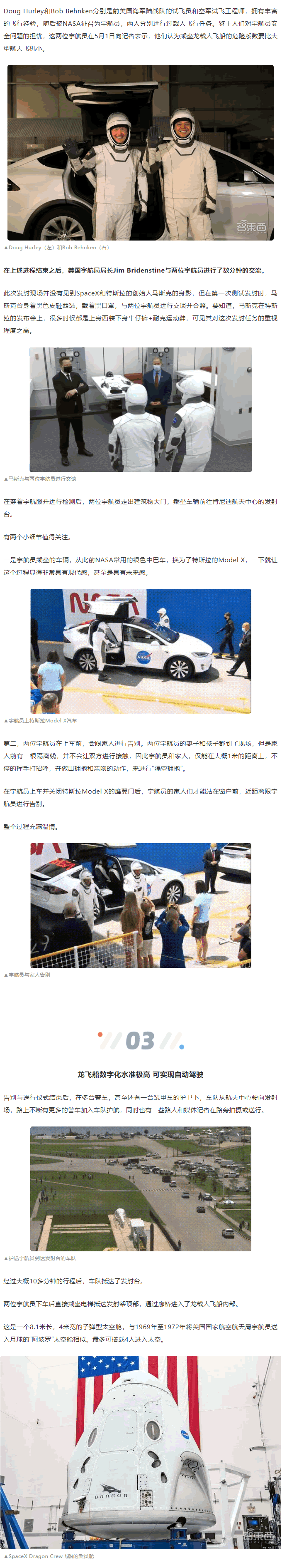 對SpaceX來說,這是其成立近20年來首次執(zhí)行航天產(chǎn)業(yè)中艱巨、技術(shù)難度G的載人航天任務(wù),意味著其航天技術(shù)實現(xiàn)了新的突破,發(fā)展到了一個新的階段,受到了NASA乃至美國官方的完全認(rèn)可。