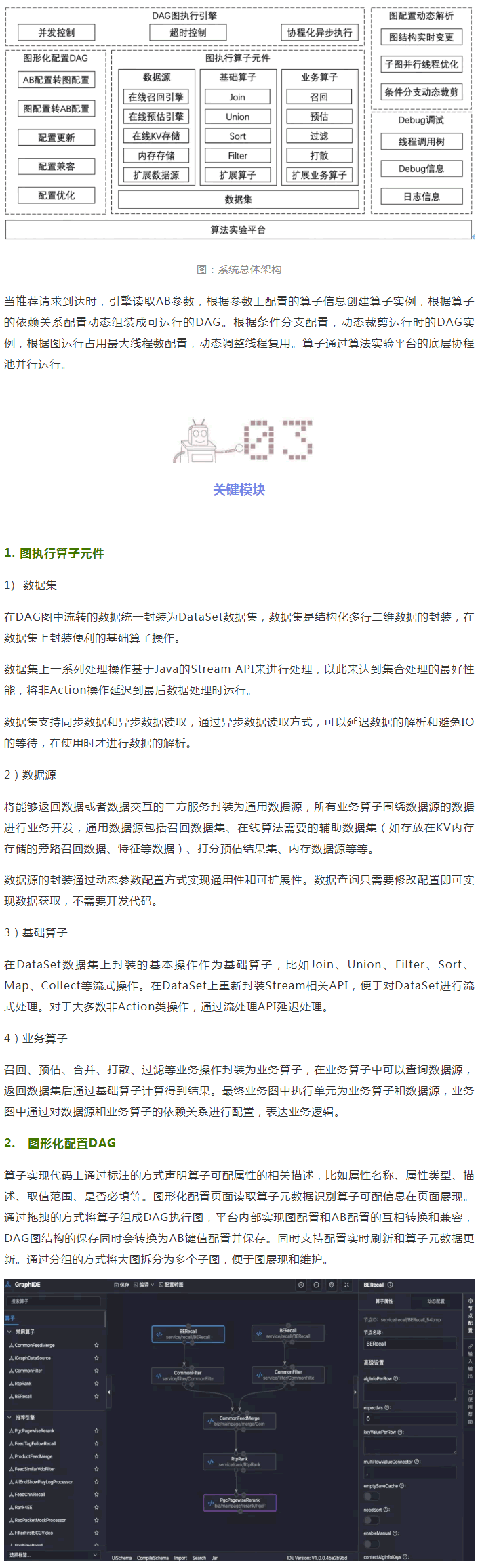 但在實際的算法應(yīng)用業(yè)務(wù)中,比如優(yōu)酷推薦業(yè)務(wù),算法應(yīng)用場景眾多(100+活躍場景),需求靈活多變,如果沒有一套通用業(yè)務(wù)框架,用于抽象出通用和定制化的部分來提G算法組件的復(fù)用度;會嚴(yán)重拖慢算法實驗的節(jié)奏;趫D引擎的算法服務(wù)框架就是為了封裝一套框架,抽象算法在線服務(wù)的通用算子,支持運行時的算法流程的裝配,提升算法服務(wù)場景搭建的效率。
