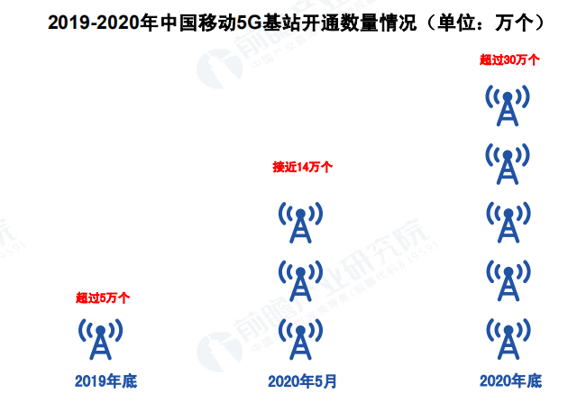 在2020年6月6日,工信部新聞宣傳中心舉行的“5G發(fā)牌一周年”線上峰會上,中國移動表示目前已開通近14萬個5G基站,并將加快網(wǎng)絡(luò)建設(shè),確保年內(nèi)累計建成30萬個5G基站,實現(xiàn)在全國所有地級以上城市提供5G商用服務(wù),夯實經(jīng)濟社會數(shù)字化轉(zhuǎn)型的網(wǎng)絡(luò)基礎(chǔ)。