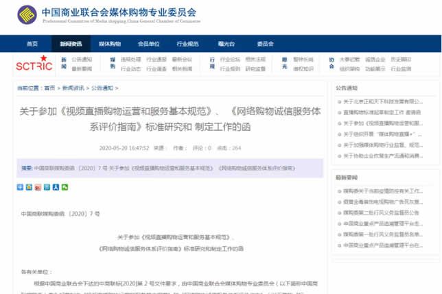經(jīng)過大量考察調(diào)研和深入研究,中國商業(yè)聯(lián)合會(簡稱中國商聯(lián))近期發(fā)布通知,要求由中國商業(yè)聯(lián)合會媒體購物專業(yè)委員會(簡稱中國商聯(lián)媒購委)牽頭起草制定行業(yè)內(nèi)首部全國性社團標準《視頻直播購物運營和服務基本規(guī)范》和《網(wǎng)絡(luò)購物誠信服務體系評價指南》兩項標準(以下簡稱《標準》),預計將于7月份正式發(fā)布執(zhí)行。