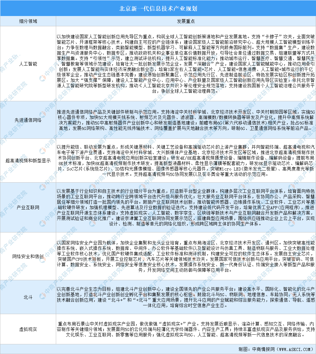 新一代信息技術(shù):以聚焦前沿、促進(jìn)融合為重點,突出G端L域、關(guān)鍵環(huán)節(jié),扶持壯大一批出色品牌企業(yè)和特色產(chǎn)業(yè)集群,重點布局海淀區(qū)、朝陽區(qū)、北京經(jīng)濟(jì)技術(shù)開發(fā)區(qū),力爭到2025年新一代信息技術(shù)產(chǎn)業(yè)實現(xiàn)營業(yè)收入2.5萬億元。