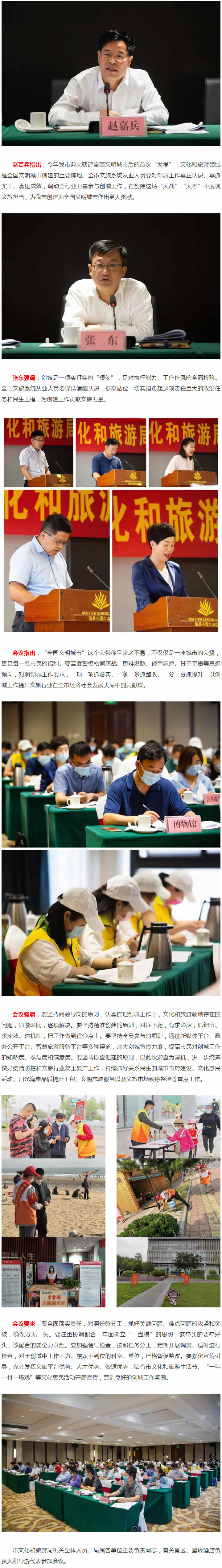 會(huì)議對市文化和旅游局2020年度創(chuàng)建全國文明城市工作進(jìn)行了安排部署,圖書館、博物館、旅游景區(qū)、星級酒店和導(dǎo)游代表分別作了表態(tài)發(fā)言。