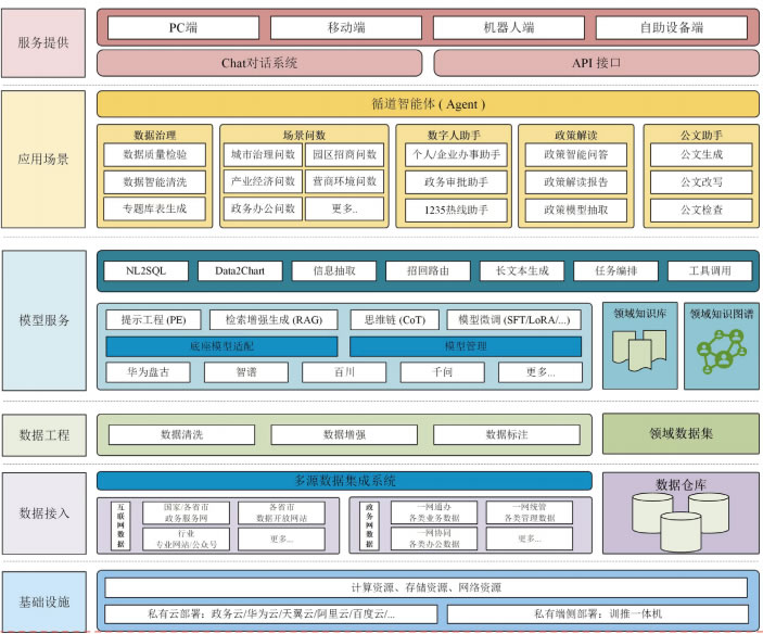 (2) 采用本地私有云資源部署的方式,定制化構(gòu)建、調(diào)優(yōu)從算力、模型架構(gòu)到模型訓練語料全鏈路自主可控 的政務(wù)垂域大模型,賦能更多有意義的場景應用。