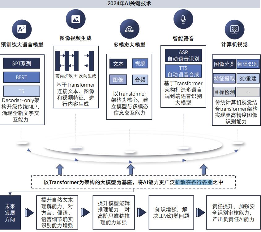 L域的技術(shù)能力增強(qiáng)和應(yīng)用范圍拓寬。未來,基于Transformer的大模型架構(gòu)將持續(xù)提升自然語言理解、擴(kuò)展