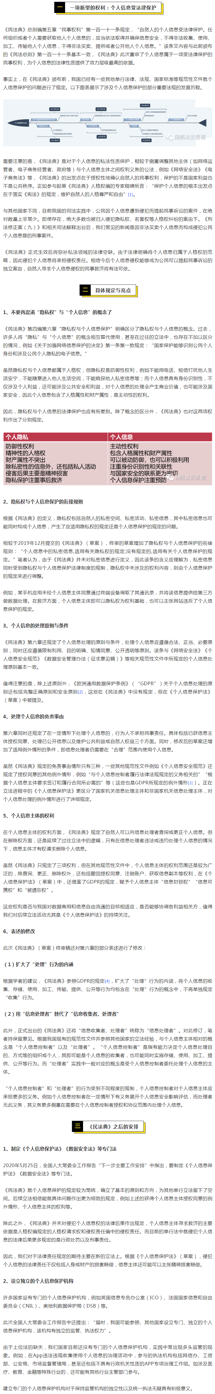 2020年5月28日,第十三屆全國人民代表大會第三次會議表決通過了《民法典》,其一大亮點(diǎn)是就個(gè)人信息的保護(hù)進(jìn)行了專門規(guī)定,成為個(gè)人信息保護(hù)法律制度的D層設(shè)計(jì);ヂ(lián)網(wǎng)時(shí)代,個(gè)人信息保護(hù)已經(jīng)成為國家和公民個(gè)人密切關(guān)注的法律問題,而《民法典》的出臺標(biāo)志著個(gè)人信息主體的權(quán)利獲得了民事基本法的確認(rèn),是我國個(gè)人信息保護(hù)法律體系建設(shè)進(jìn)程中邁出的重要一步。