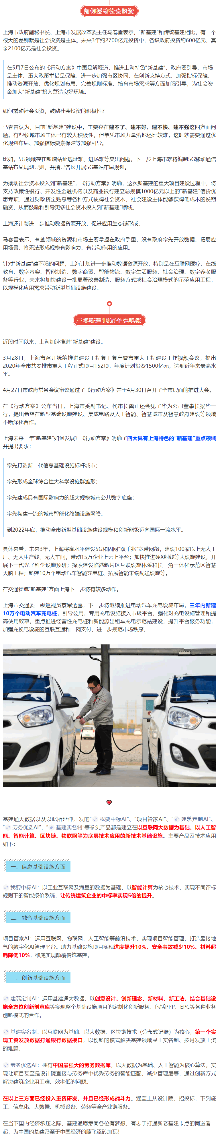 5月7日,上海市公開《上海市推進新型基礎(chǔ)設(shè)施建設(shè)行動方案(2020-2022年)》(下簡稱《行動方案》),要求三年內(nèi)推動上海新型基礎(chǔ)設(shè)施建設(shè)規(guī)模和創(chuàng)新能級邁向國際出色水平。其中,強調(diào)“社會資金加大‘新基建’投入”成為上海版“新基建”方案的重點之一。