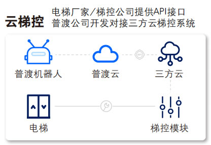 云梯控通過云端API接口與電梯控制系統(tǒng)進(jìn)行 數(shù)據(jù)交互。服務(wù)機(jī)器人可以通過網(wǎng)絡(luò)訪問電 梯操作系統(tǒng),而無需對(duì)電梯進(jìn)行任何硬件改 造。這一過程依賴于云計(jì)算平臺(tái)的實(shí)時(shí)處理 和數(shù)據(jù)分析能力。云梯控的優(yōu)勢(shì)在于不需要 改造電梯,通過API接口實(shí)現(xiàn)機(jī)器人乘梯;兼 容性G,可以供不同類型的服務(wù)機(jī)器人在同 一個(gè)場(chǎng)景共同乘梯 ;功能實(shí)現(xiàn)靈活,可通過 電梯接口去實(shí)現(xiàn)不同乘梯需求。