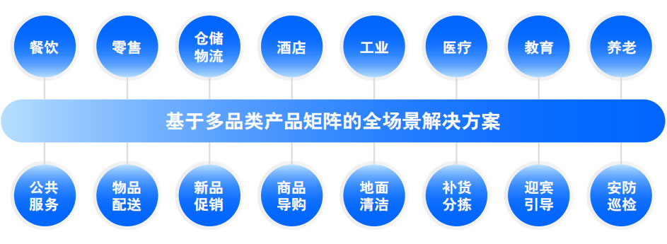 隨著服務(wù)機(jī)器人在餐飲、零售、倉(cāng)儲(chǔ)物流、酒 店、工業(yè)、醫(yī)療、教育、養(yǎng)老、公共服務(wù)等各行 業(yè)中加速應(yīng)用滲透,服務(wù)邊界持續(xù)拓展深化,與 此同時(shí),在差異化的場(chǎng)景中仍然存在著搬運(yùn)、清 潔、迎賓交互等多種共性的復(fù)合需求。