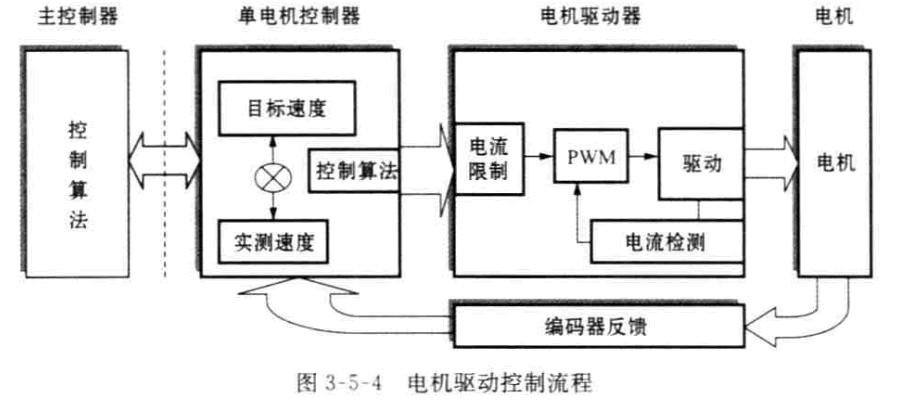 STM32 運動控制系統(tǒng)同時控制3路全方位輪的控制,3路d立PWM 信號控 制著機器人的3個電機。每個電機的驅(qū)動控制系統(tǒng)如圖3-5-4所示。