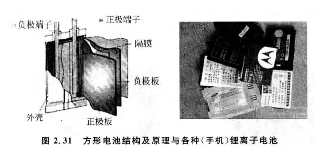 鋰電池是指電化學(xué)體系中含有鋰(包括金屬鋰、鋰合金、鋰離子、鋰聚合物),由鋰金 屬或鋰合金為負(fù)極材料、使用非水電解質(zhì)溶液的電池。鋰電池大致分為鋰金屬電池和鋰 離子電池兩類。鋰金屬電池內(nèi)含金屬態(tài)鋰,它通常是不可充電的。鋰離子電池不含有金 屬態(tài)鋰,它可以充電。Z早出現(xiàn)的鋰電池來(lái)自于偉大的發(fā)明家愛(ài)迪生,他使用了反應(yīng) Li+MnO₂=LiMnO₂ 。 該反應(yīng)為氧化還原反應(yīng)和放電。由于鋰金屬的化學(xué)特性非常活 潑,使得鋰金屬的加工和保存及使用對(duì)環(huán)境要求非常高,所以鋰電池長(zhǎng)期沒(méi)有得到廣泛 應(yīng)用。但是,鋰電池現(xiàn)在已經(jīng)成為了主流,如圖2.31所示。鋰離子電池中因?yàn)椴缓兄?金屬鎘,與鎳鎘電池相比較,它可以大大減少對(duì)環(huán)境的污染。