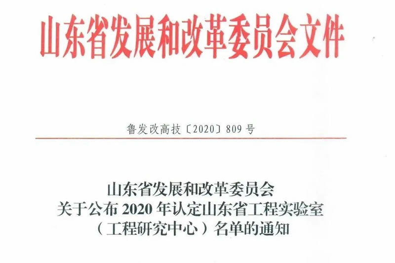 山東省發(fā)展改革委發(fā)布《關(guān)于公布2020年認(rèn)定山東省工程實(shí)驗(yàn)室(工程研究中心)名單的通知》(魯發(fā)改G技〔2020〕809號(hào))