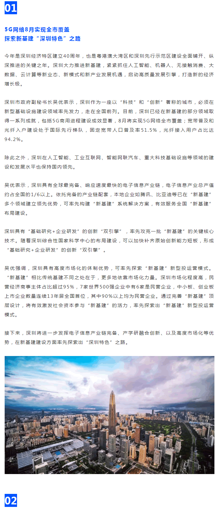日前,深圳市出臺(tái)《關(guān)于加快推進(jìn)新型基礎(chǔ)設(shè)施建設(shè)的實(shí)施意見(2020-2025年)》(以下簡(jiǎn)稱《實(shí)施意見》)。7月21日,深圳市政府新聞辦聯(lián)合深圳發(fā)布舉行新聞發(fā)布會(huì),介紹新基建總體情況和發(fā)展優(yōu)勢(shì),并對(duì)《實(shí)施意見》做了解讀。