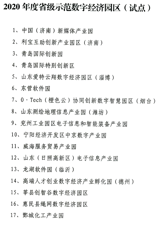 青島海爾云谷 滕州市大數(shù)據(jù)產(chǎn)業(yè)園 梁山經(jīng)濟開發(fā)區(qū)  博興縣數(shù)字經(jīng)濟園區(qū) 藍海L航大數(shù)據(jù)產(chǎn)業(yè)園 方達電子商務(wù)園 棗莊中展大數(shù)據(jù)產(chǎn)業(yè)園