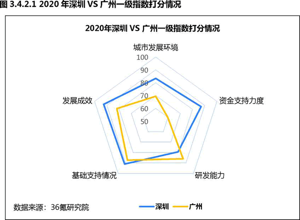 深圳人工智能發(fā)展總指數(shù)得分為86.52分,廣州得分77.74分,分別占據(jù)全 國人工智能發(fā)展城市第三位和第六位。雖然深圳有深圳大學(xué)、南方科技大學(xué)等G校 資源,但廣州整體研發(fā)能力更勝一籌,杰出人才總量、論文產(chǎn)出數(shù)量均相對(duì)L先。 雖然廣州研發(fā)能力較強(qiáng),但整體實(shí)力上與深圳相比還存在一定差距,尤其是城市發(fā) 展環(huán)境、資金支持力度和發(fā)展成效上均不及深圳。