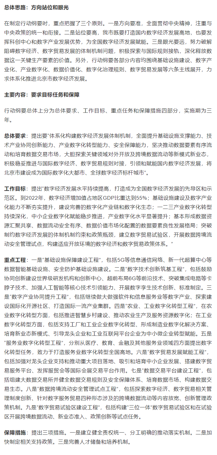 《北京市促進數(shù)字經(jīng)濟創(chuàng)新發(fā)展行動綱要(2020-2022年)》(以下簡稱《剛要》),經(jīng)北京市人民政府同意,相關(guān)部門于9月7日召開了新聞發(fā)布會正式予以發(fā)布。