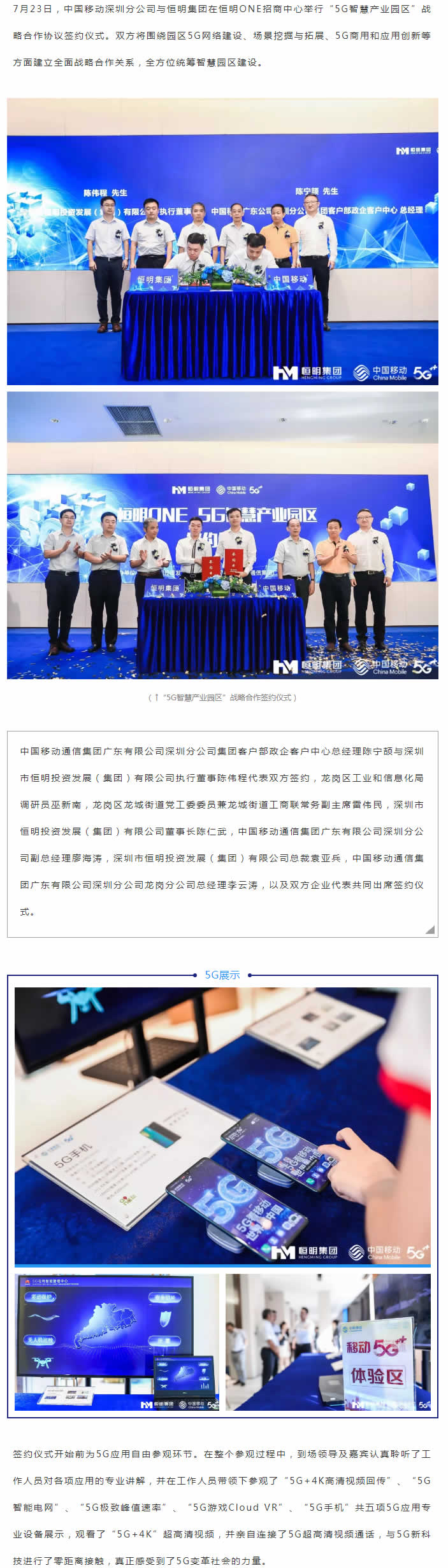 深圳移動與恒明集團簽署5G+智慧產(chǎn)業(yè)園區(qū)戰(zhàn)略合作框架協(xié)議,雙方攜手推動深圳市重大項目恒明ONE產(chǎn)業(yè)園的5G智慧建設與創(chuàng)新生態(tài)升級,在園區(qū)的5G專網(wǎng)建設、智慧樓宇、無線視頻監(jiān)控、AI人臉識別、智能機器人、4K及8K超G清視頻直播等方面深入合作。