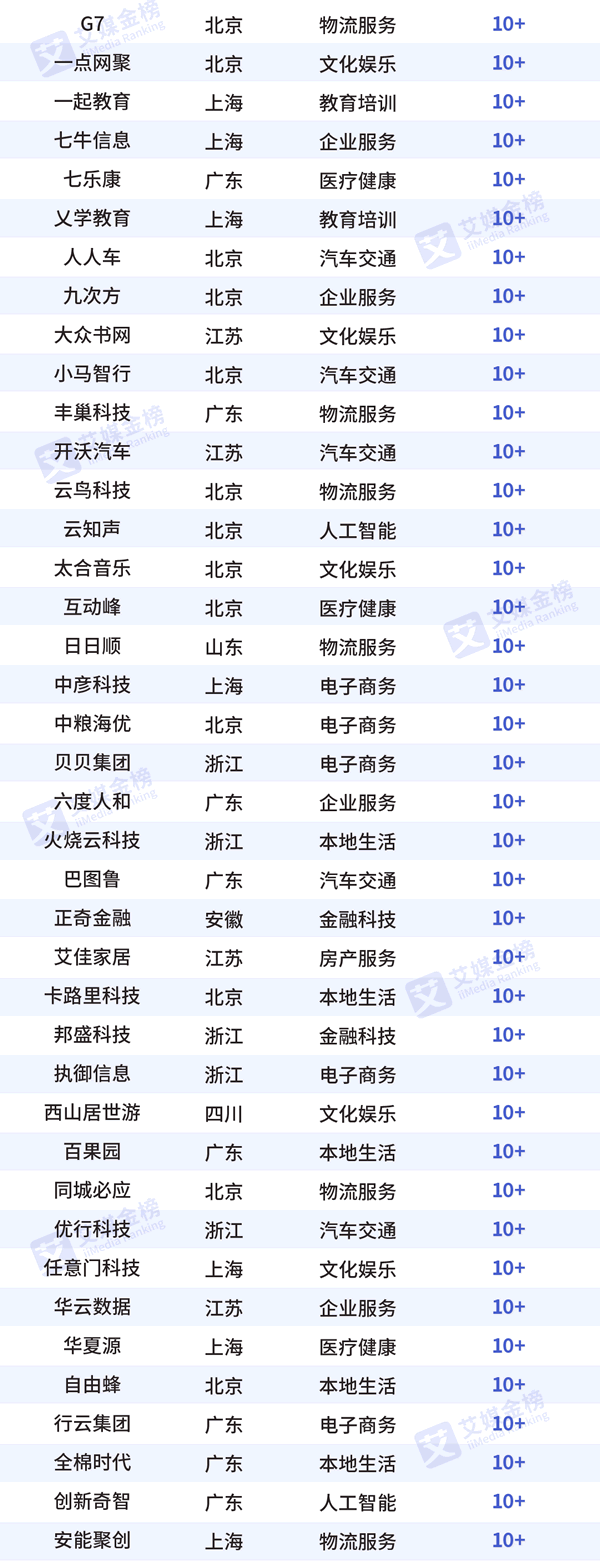 字節(jié)跳動,螞蟻金服,滴滴出行,快手,陸金所,菜鳥網(wǎng)絡(luò),京東數(shù)科,微眾銀行,馬上金融,商湯科技,京東物流,曠視科技,優(yōu)必選