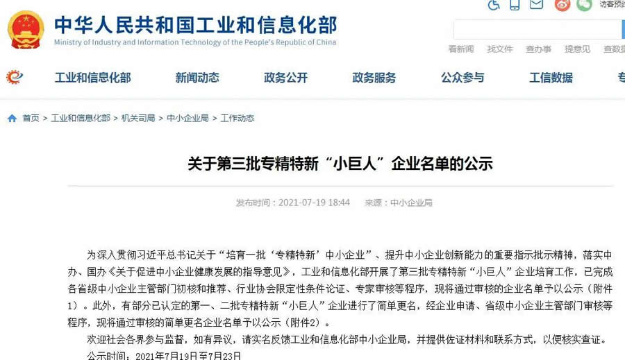 十四五時(shí)期我國(guó)將推動(dòng)形成一百萬(wàn)家創(chuàng)新型中小企業(yè),十萬(wàn)家專(zhuān)精特新中小企業(yè),一萬(wàn)家專(zhuān)精特新小巨人企業(yè),財(cái)政重點(diǎn)支持500家以上小巨人企業(yè)