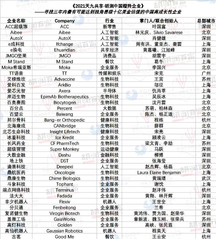 171家中國(guó)G成長(zhǎng)性瞪羚企業(yè)榜單2021
