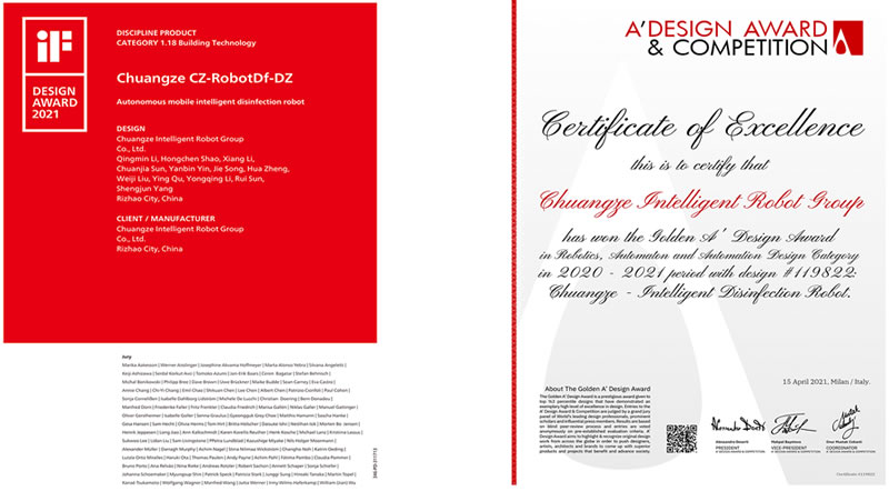 ◇在:創(chuàng)澤是榮獲國(guó)際CES創(chuàng)新獎(jiǎng)的商用類人型智能服務(wù)機(jī)器人企業(yè),也是國(guó)內(nèi)榮獲德國(guó)歷史悠久的2021年iF 設(shè)計(jì)獎(jiǎng)的移動(dòng)式消毒機(jī)器人企業(yè);同年,創(chuàng)澤榮獲意大利A'Design Award金獎(jiǎng)。