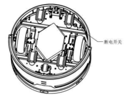 機器人底部帶有電源總開關(guān),位于機器人后方右側(cè)萬向輪旁邊 ,用于斷開電池電源。出⼚時默認開啟。當機器存在時間(超過一個月) 不使時, 需要將電源總開關(guān)撥動至關(guān)閉狀態(tài),避免長時間不使而導(dǎo)致電池電量虧損狀態(tài),再次使用時需要手動將開關(guān)撥動至打開狀態(tài)。