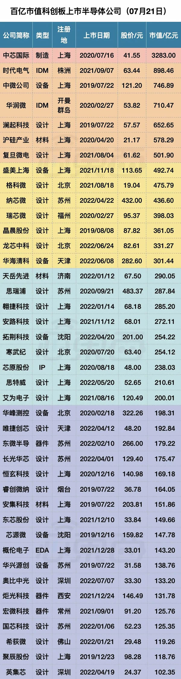 科創(chuàng)板百億市值上市半導(dǎo)體公司排名