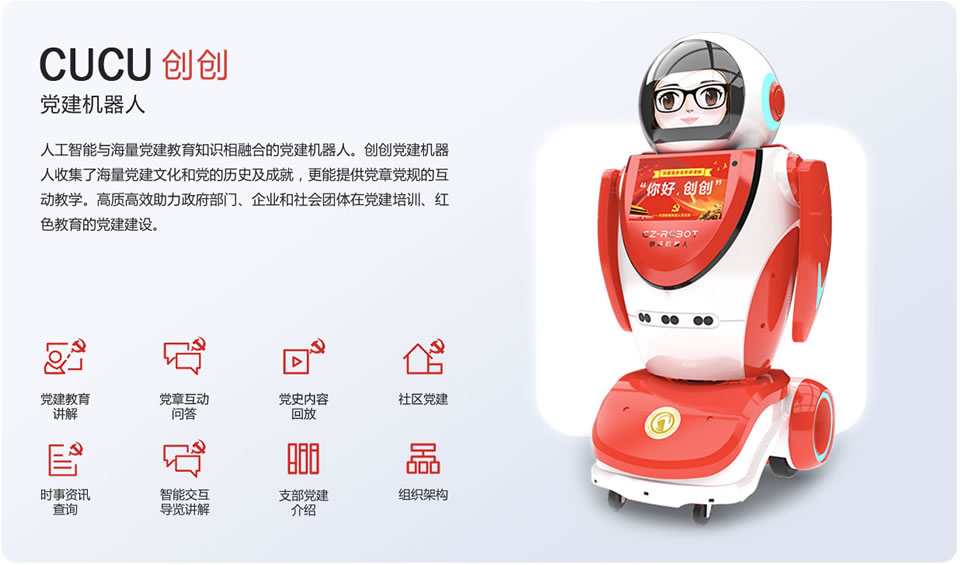 黨建講解機(jī)器人擴(kuò)展黨建教育渠道,助力智慧黨建建設(shè),加強(qiáng)在黨建培訓(xùn)、紅色教育等方面人工智能應(yīng)用。
